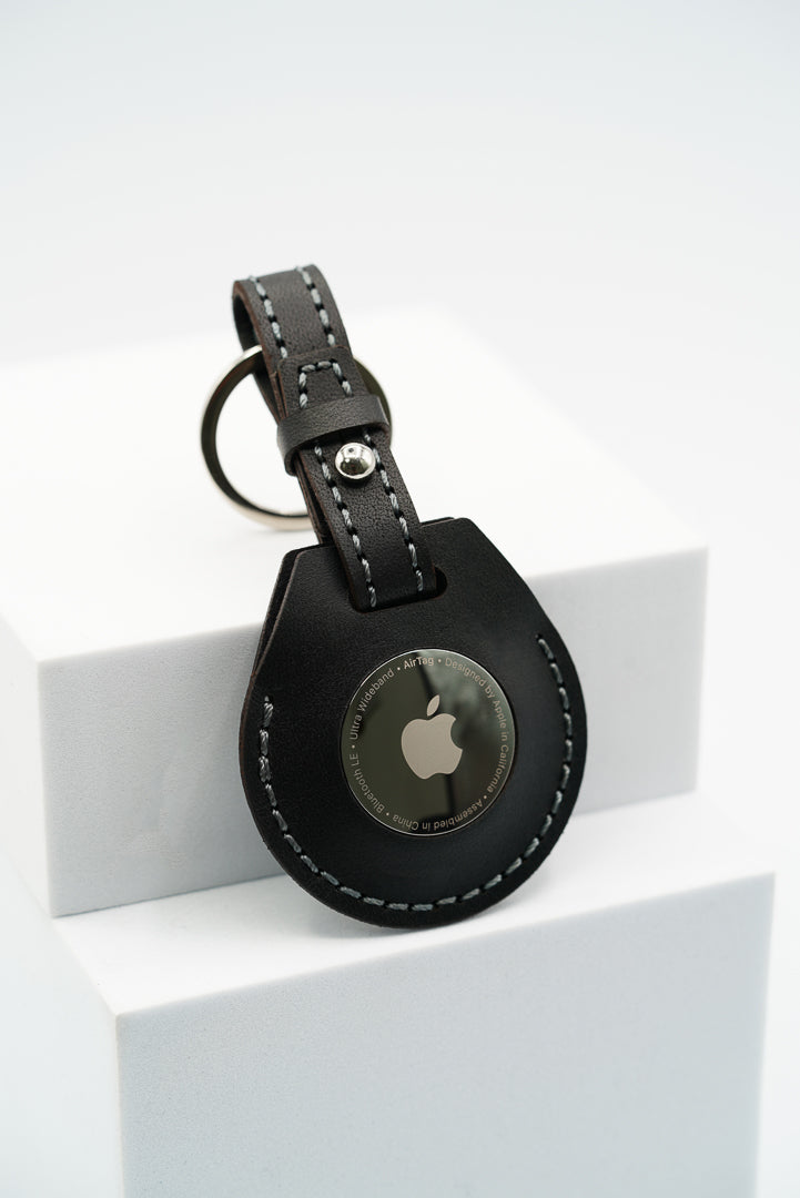 Handmade Leather AirTag Case - Black (Stitched loop)